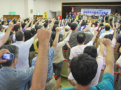 去年1年間、福島としても反原発を単なる市民運動ではなくて、労働運動、労働組合が軸になった反原発闘争をとにかく登場させることに総力を挙げてきた。実際はなかなかすんなりは行かないですよね。それはなぜそうならないのかというと、連合の存在だと思います。連合が労働者階級の上にずっしりと重石になっている。だから現実の反原発闘争をもう一歩グレードアップさせるためには連合そのものと対決する闘い方をいよいよやっていく必要があると思っています。