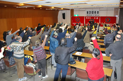 私は昨12月で組合員権停止期間が満了し、大震災で延期になっていた定期大会にむけた分会(50名)総会・支部(570名)総会に参加し、役員選挙に立候補し大会には大会代議員・執行委員候補として参加しました。
