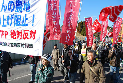 三里塚芝山連合空港反対同盟の新年初の現地デモと団結旗開きが140人の結集で行われた。1月7日午前10時9分に急逝された反対同盟事務局員・鈴木謙太郎さんの遺志を引き継ぎ、三里塚決戦の勝利を固く誓い合った。
