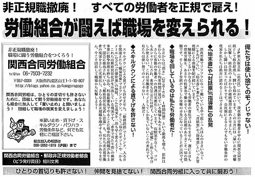 ・闘う合同・一般労組 ■JP新大阪支店で組合結成!