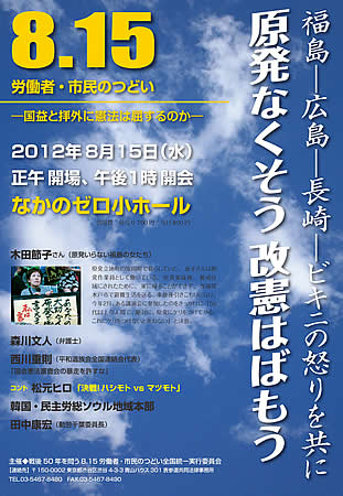 ・「原発なくそう 改憲はばもう 8・15労働者・市民のつどい」に集まろう