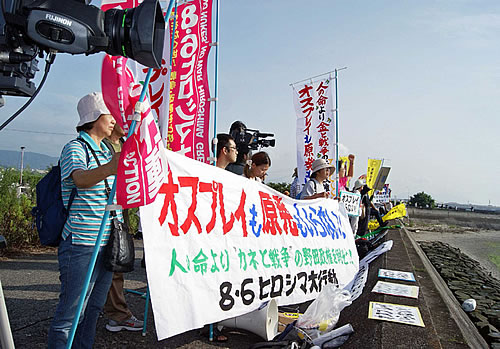 岩国市民の怒りは、沖縄県民のオスプレイ配備反対の闘いと完全に一体であり、8・5沖縄県民大会の10万人を超えるであろう闘いにがっちり連帯する闘いを生み出しています。沖縄−本土を分断することで辛うじて成り立ってきた日米安保体制を、その根底から打ち破る闘いの始まりです。安保闘争の新たなシーンへの突入となっています。