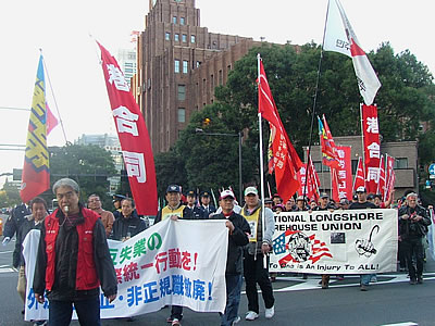 11・4集会が切り拓いたもう一つの地平は、非正規職撤廃闘争の前進です。非正規労働者の現実は低賃金といつでも首を切られる状況で生きていけないどころか、偽装請負・安全無視の職場環境で「職場に行けば殺される」ような状況です。「命も誇りも奪われてたまるか!」と立ち上がり、組合を作って反撃を開始し、「解雇撤回・非正規職撤廃」をめざす新たな労働運動が始まっています。東京西部ユニオン・鈴木コンクリート工業分会や郵政非正規ユニオンの闘いが広がり、11・4集会の非正規職労働者の結集が拡大しました。