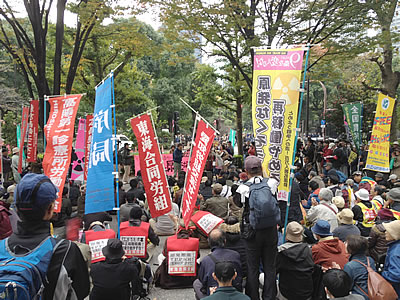 (写真 11・4集会後、呼びかけ3労組と海外代表を先頭にデモ行進【11月4日 東京】)