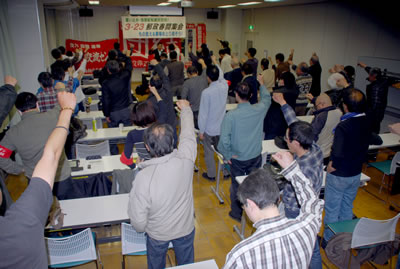 さらに「東京決戦」ということが議案と討論の中でも強調された。労組交流センターの新たな労働学校は東京から開始される。東京労組交流センター青年部建設を基軸に全国労組交流センター青年部建設を! 4月7日に開催される東京労組交流センター第18回総会が跳躍台だ。青年を先頭に総力決起を訴える。