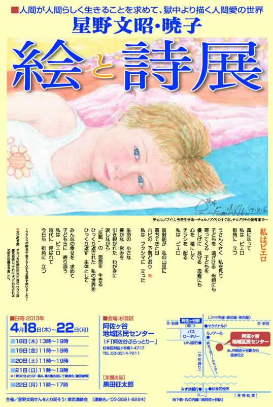 ●『星野文昭・暁子 絵と詩展』にお集まり下さい 星野暁子