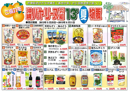 沖縄バヤリース労組13' 夏 物販