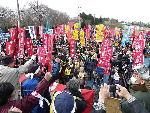 大恐慌のますますの進展は、市場・資源・領土の支配をめぐる資本家・国家間の争いを激化させ、世界を新たな戦争・核戦争へ引きずり込もうとしています。民営化・外注化・非正規化、首切りも、被曝労働の強制も、戦争と核戦争も、すべて資本家が生き延びようとする攻撃です。まさしく全世界で同じ攻撃がかけられています。今こそ労働者は国境を越えて団結する時です。労働運動の力と国際連帯で、安倍政権の再稼働と改憲と戦争・核武装を打ち砕こうではありませんか。