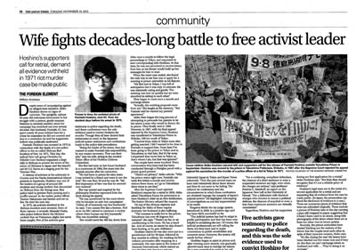 11月19日発行の英字新聞ジャパン・タイムズに、星野闘争を紹介する画期的な記事が掲載されました。
