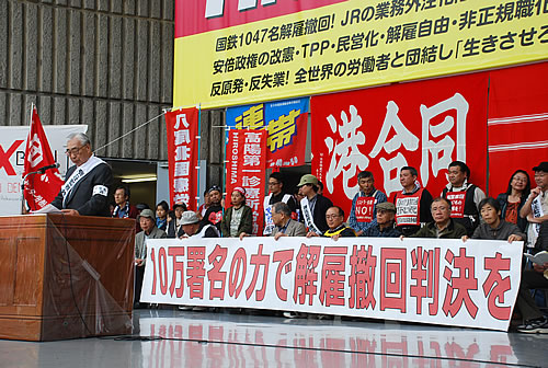 始まりは国鉄分割・民営化だった。中曽根元首相は、その狙いを「国労をつぶし、総評・社会党をつぶすことを明確に意識してやった」「行革でお座敷をきれいにして、立派な憲法を床の間に安置することが目的だった」と語っている。今こそその流れを断ち切り、労働者の団結した力をとり戻さなければならない。