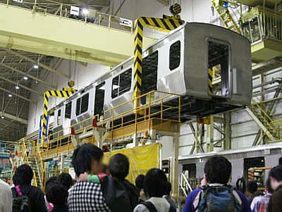 (写真 新津車両製作所の組立ライン)